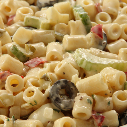 Large ditallini coated with a Natural whole egg mayonnaise, black olives, celery, eggs and natural sweet relish.