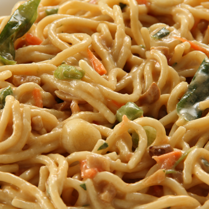 This salad is sweet with just a little bit of heat. Good-for-you wheat noodles are loaded with carrots, scallions and fresh herbs mixed with a peanut coconut dressing. Serve hot or cold.